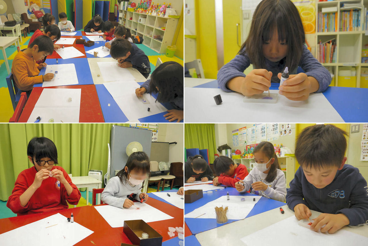 今日はアフタークラス(放課後の英語授業)に通っている小学生キッズを対象に工作実習が催されました(難易度が高いため、年齢層の高いキッズのみを対象としています)。テーマは・・・当スクールでは初となるUVレジン。特殊な樹脂を流し込み、紫外線を当てて固める、というものです。