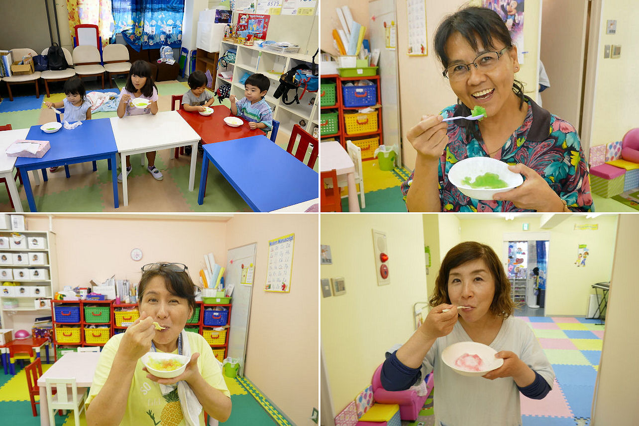 「猛暑」から「残暑」の季節に移り変わり、暑さの中にも どこか今までとは質が違うような印象を受けます。とはいえ、暑い事実に変わりは無く。そこで今日はアフタースクール(英語の学童保育)時間帯に かき氷の差し入れを実施しました。