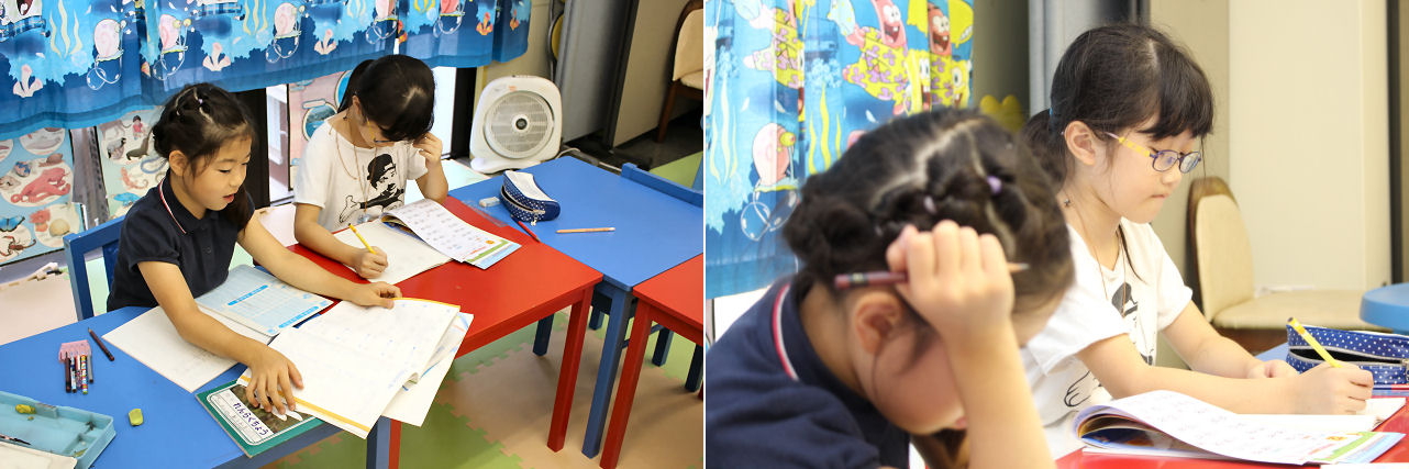 友達と遊ぶもよし、玩具で遊ぶもよし、絵を描くもよし、本を読むもよし、学校の宿題をするもよし。ここで唯一のルールがあるとすれば、使う言語は全て英語、ということのみです。なので学校の宿題をコッソリとスタッフに教えてもらおうと画策する場合も、当然 英語で聞かなければなりません。英語を駆使しながら学校の宿題を教えてもらう・・・考えようによってはアフタースクールでしか できない荒技とも言えます。