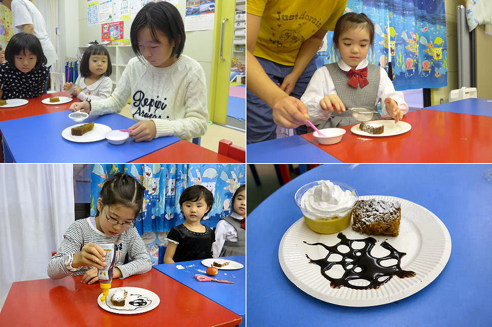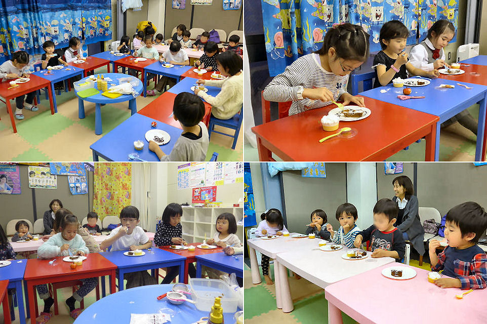 今月末はハロウィーン。当スクールのフルデイクラス(日中クラス)では毎年違った催し事を企画・実施しており、今年も 御多分に漏れず。アフタースクール(英語の学童保育)でも小規模ながらハロウィーンにちなんだことを毎年実施していますが、今年の企画は今日 先行実施することになりました。お題目は工作とデザート作り実習の2本立て。