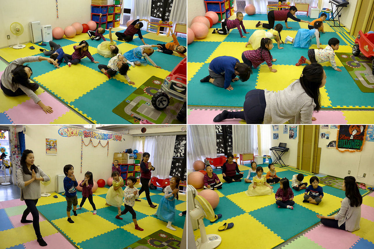 本日の〆はヨガレッスン。お姫様の格好をしたままヨガに勤しむ姫が若干約2名。最近は気温が乱高下していますが、ヨガで体の内側から暖かくなりました。盛り沢山となった今年のサタデーハロウィーンでした。
