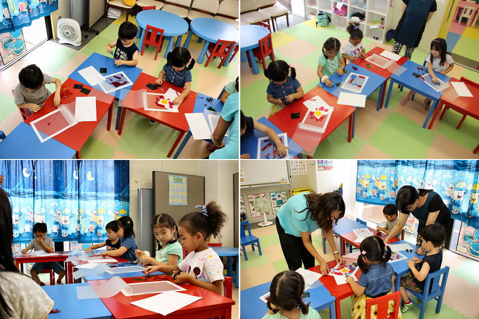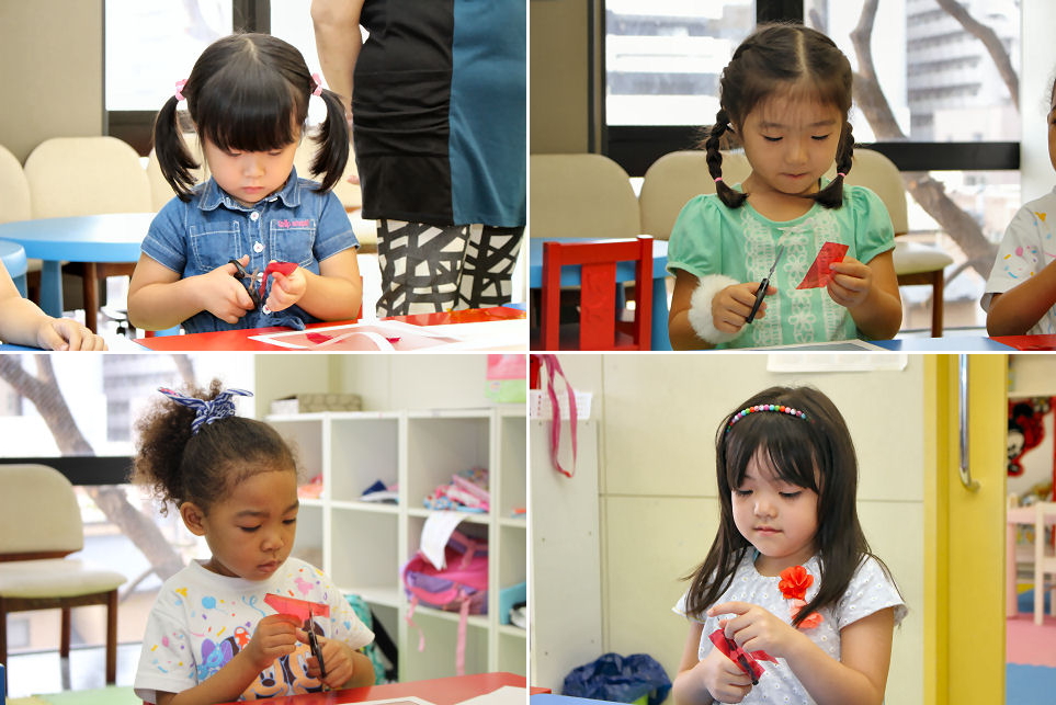 当スクールでは当然のことですが、何をするにしても使う言語は英語のみ。ハサミや糊といった単語も全て英語で表現します。楽しく工作をしながら英語を駆使するため、結果的にキッズは より多くを吸収してくれる、と解釈することができます。