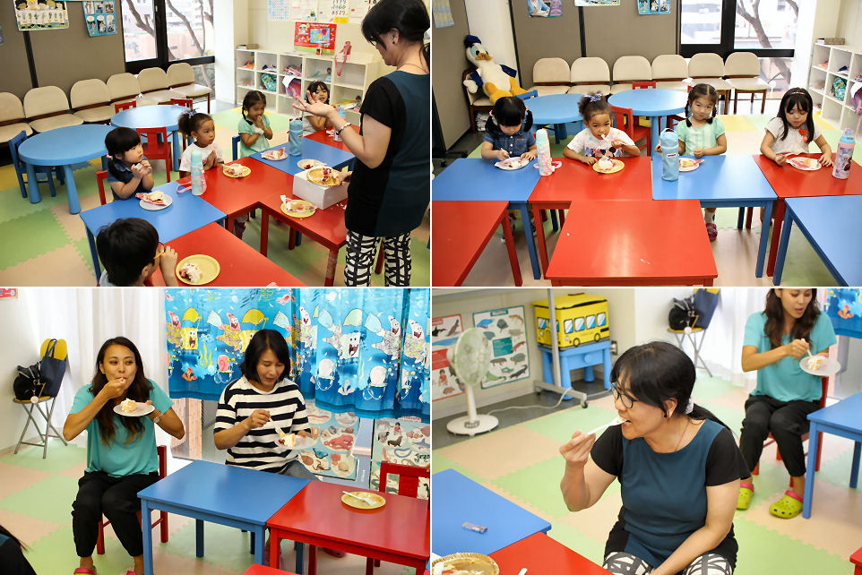 このケーキ目当てで、今日のキッズは お弁当をアッという間に完食。昼食を補助するスタッフにとっても、ケーキに ありつけるキッズにとっても嬉しい展開となりました。また、今日はキッズの数が少なかったということで、スタッフ達にも おこぼれが ありました。