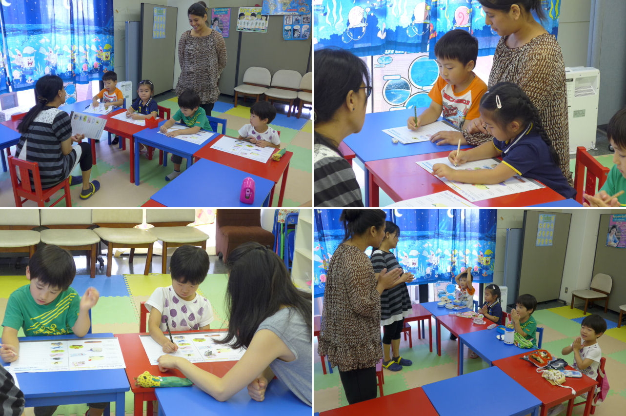普段、サタデークラスに通っているキッズ。夏休み期間中はフルデイに移籍(?)する、という事例がチラホラ。また、今日は1人のキッズが海外旅行中。来週は1人が海外旅行へ向かう予定。皆さん、何かと忙しいですね。