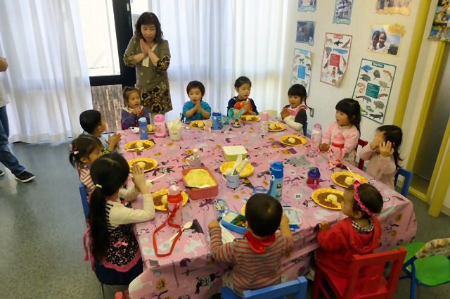 給食のように みんなで同じ物を食べながらワイワイ。