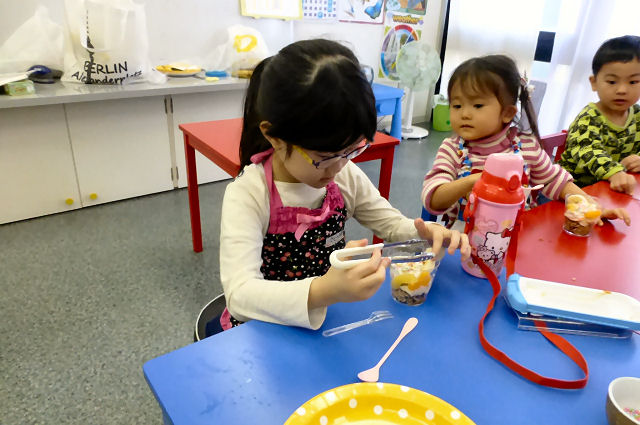 あとはキッズが自分達で作ります。それはパフェ。ちょっとした