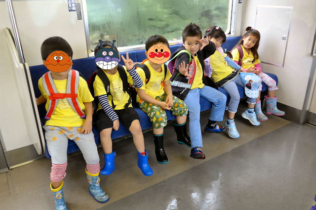 全員集合の後、電車に乗って目的地に向かいます。