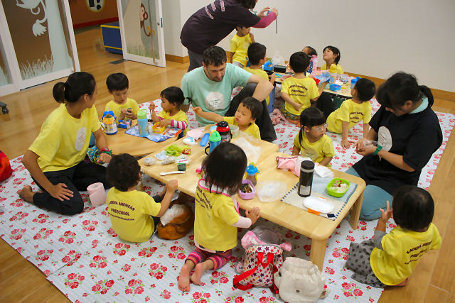 昼食の時間。こちらの施設には食べ物の持ち込みが可能。