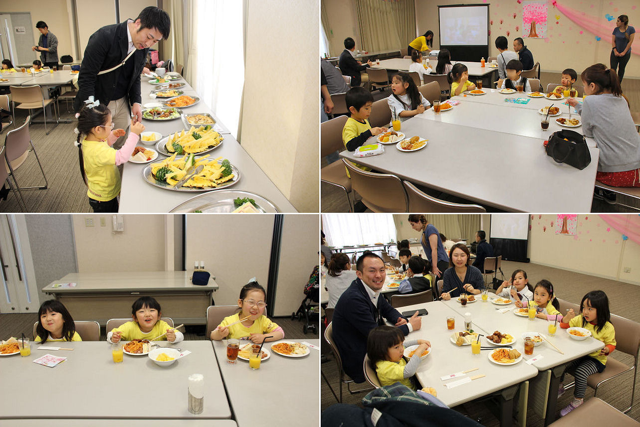 お待ちかね、昼食の時間。今回の献立は なかなか国際的。東アジア、欧州、南アジア、中東、4地域の料理が勢揃い。各地域に因縁・・・もとい、縁のあるスタッフが夫々の料理を担当。キッズは底なしの食欲を披露し、完食御礼となりました。