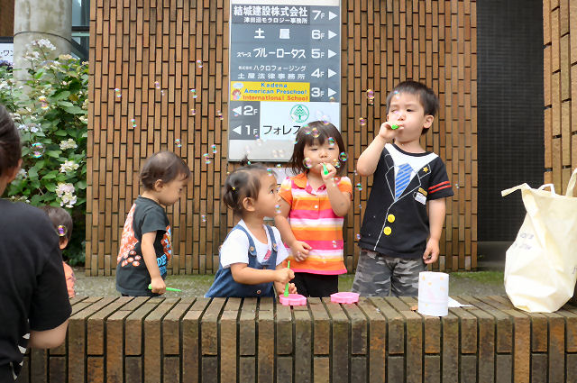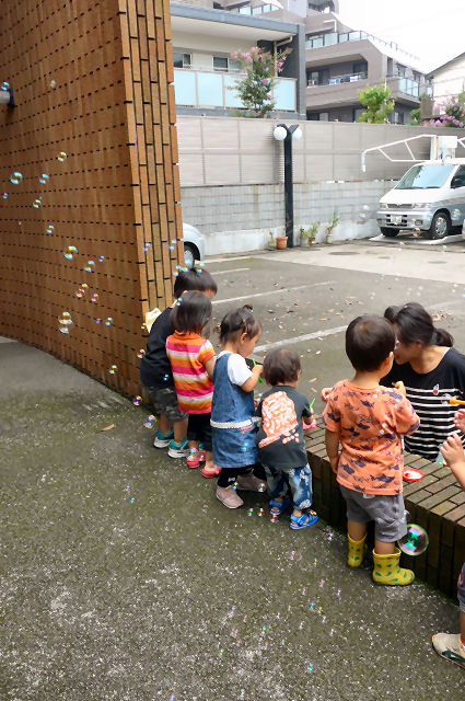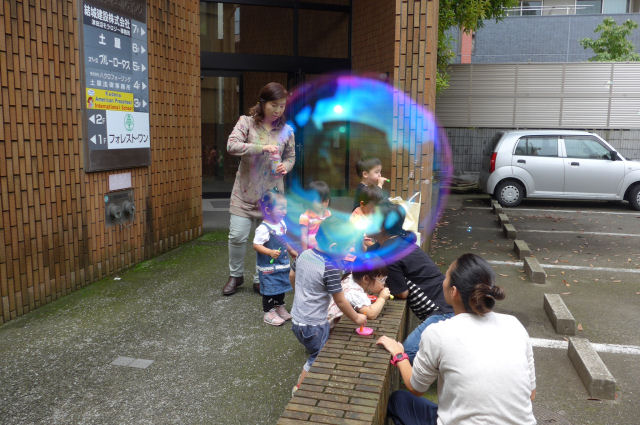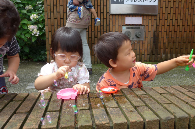 みんなの お目当てはシャボン玉。この日は梅雨の晴れ間・・・