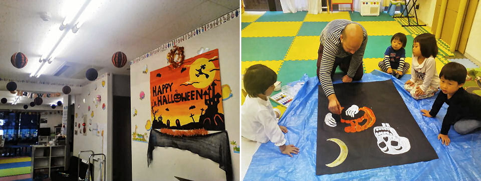 当スクールで遠足、夏祭り、聖夜会、卒園式と並ぶ5大行事(?)の1つ、ハロウィーン。本番は明日ですが、そのための準備作業は何日も前から着手しており。スクールの中は日に日にハロウィーンの気配が色濃く出てくるようになりました。