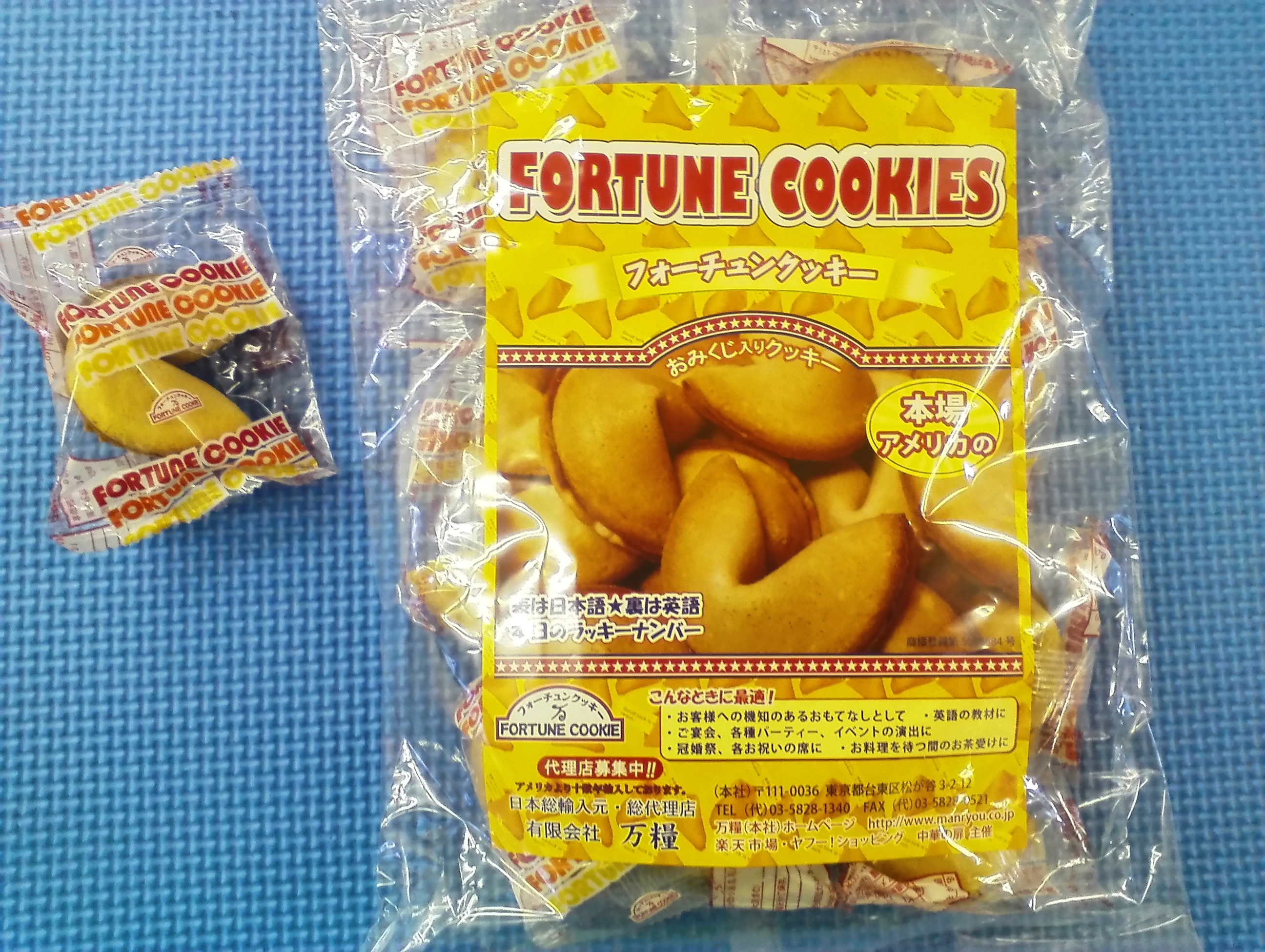 でも、実際にフォーチュンクッキーってどういうものなのか?と、卒園生のお母様がこの間カデナキッズに差し入れを持ってきてくださいました。
