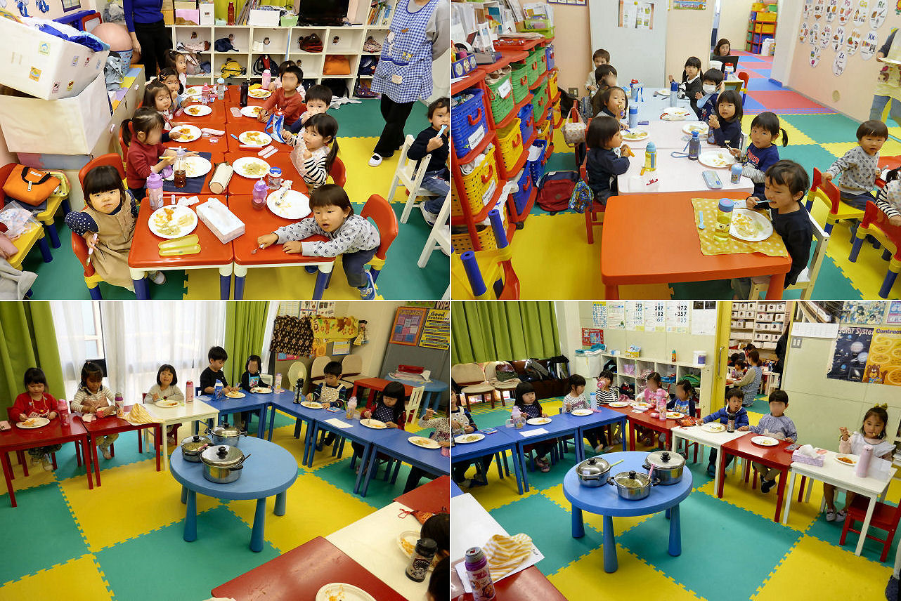 今日は お待ちかねのランチパーティー。今年度、大きな催し事の一環としては既に何度か実施していますが、フラデイクラスに於けるランチパーティー単体での開催は意外にも初めてです。お弁当不要ということで、朝は 親御さん達の顔色が随分と良かったように感じます。いつも早起きして お弁当を作ってくれている保護者の皆さん、いつも お疲れ様です。ランチパーティー開催日は少しですが朝は ゆっくりしてくださいね。