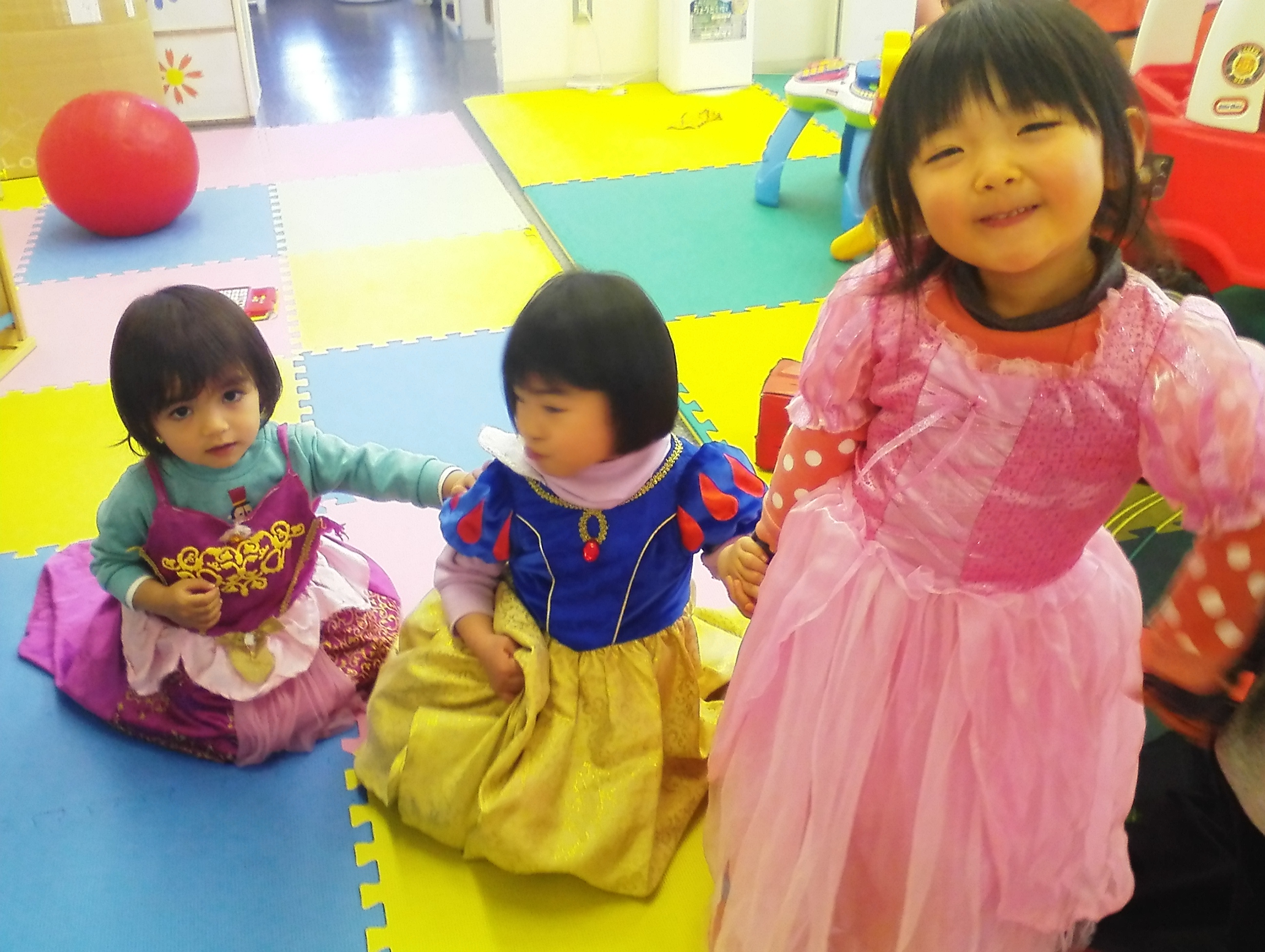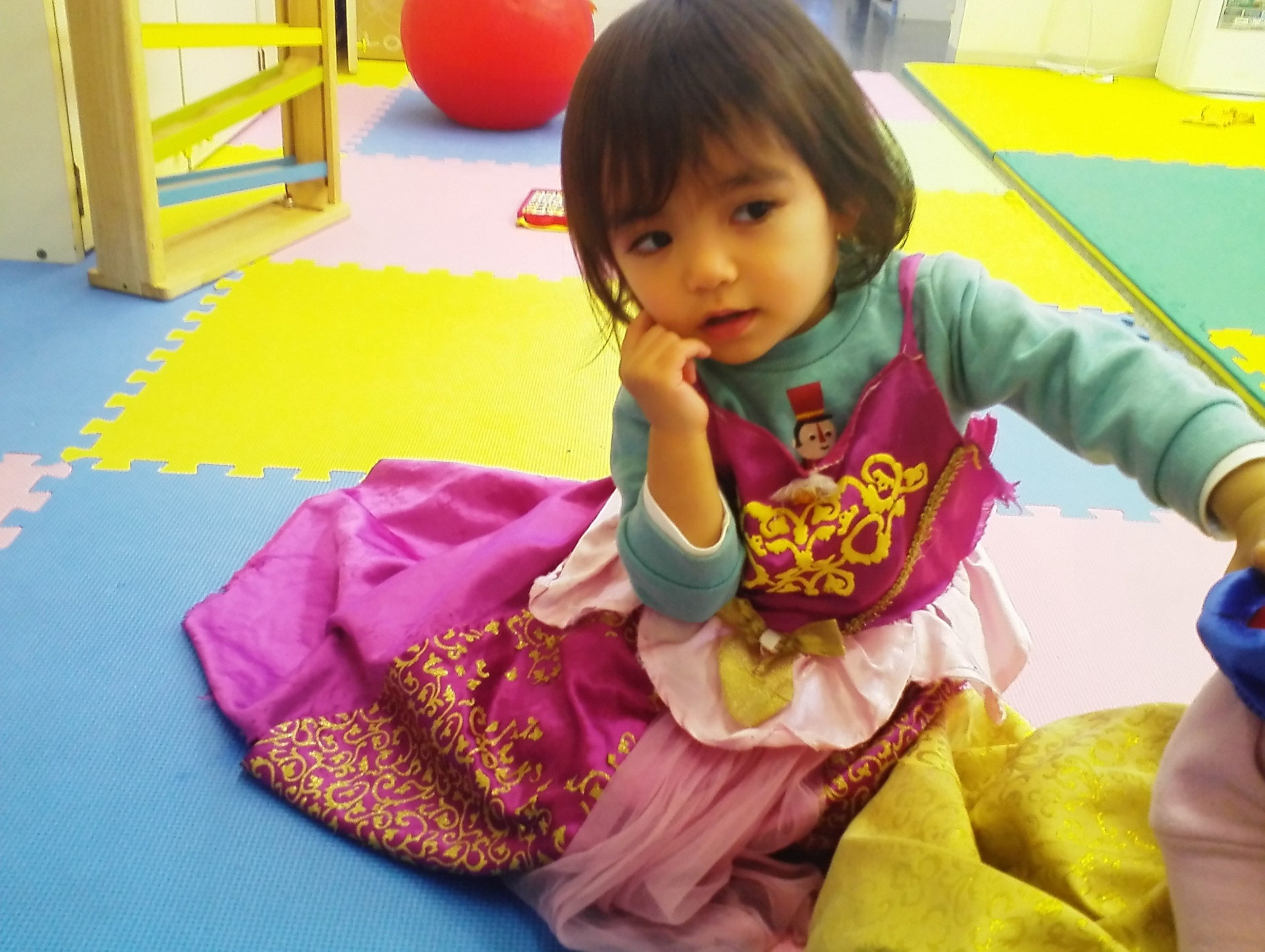 カデナでは自由遊びの時間、このようにドレスを着て過ごすキッズもいます!