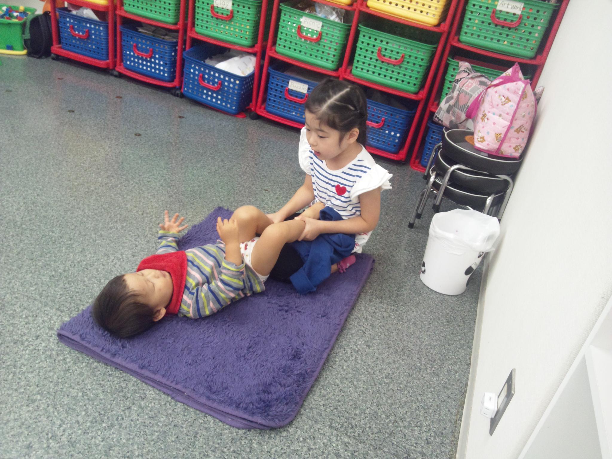 お着替えのお手伝いをしてくれています。微笑ましいですemoji