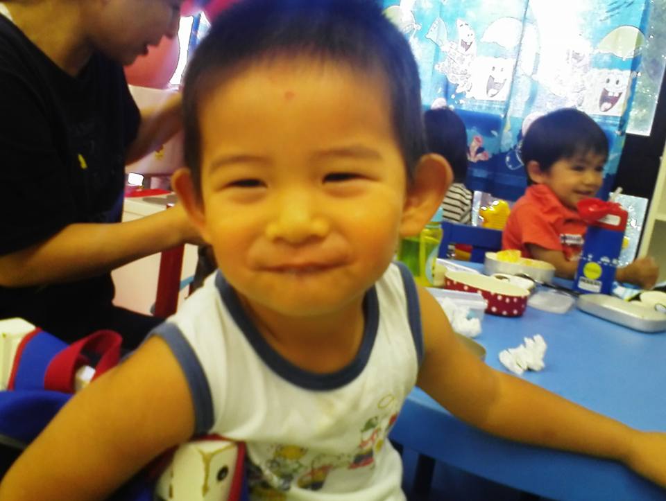 パパがスクールの支度をし、お弁当を作って連れてきてくれました。