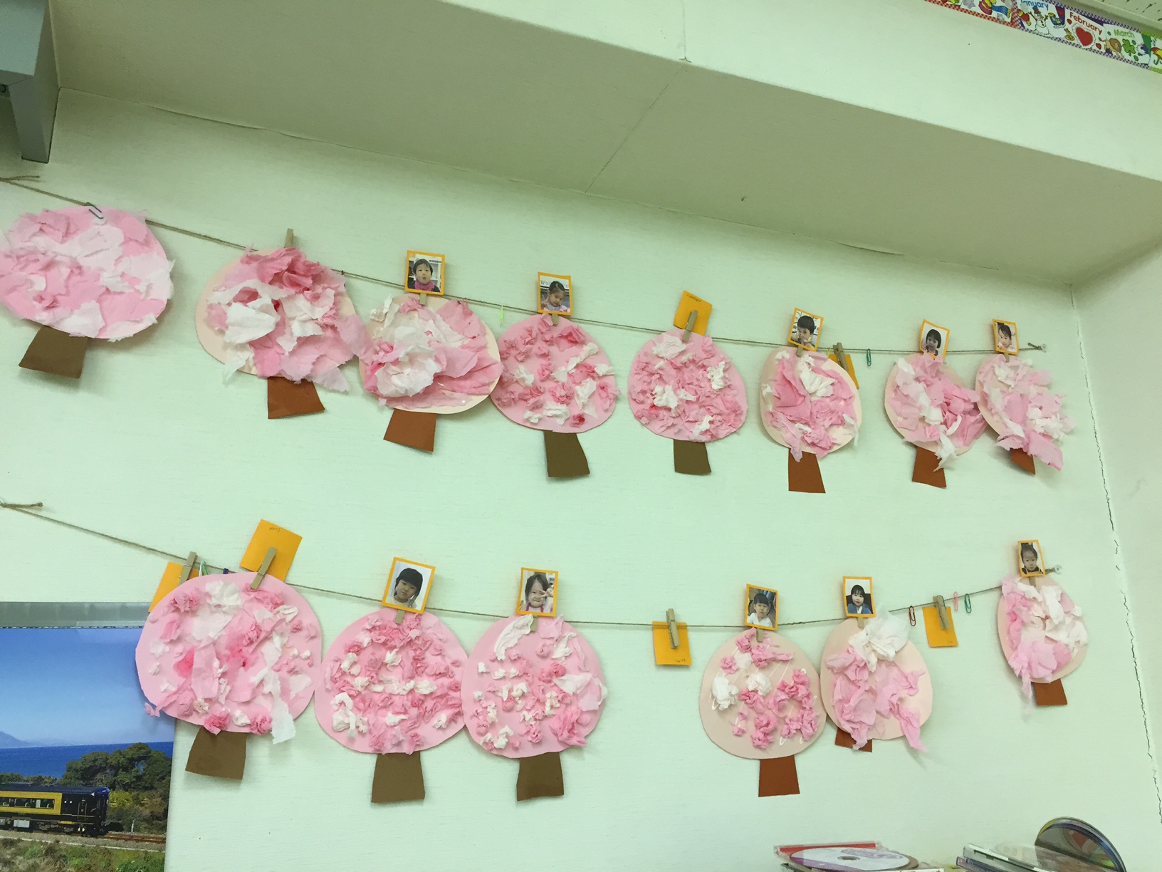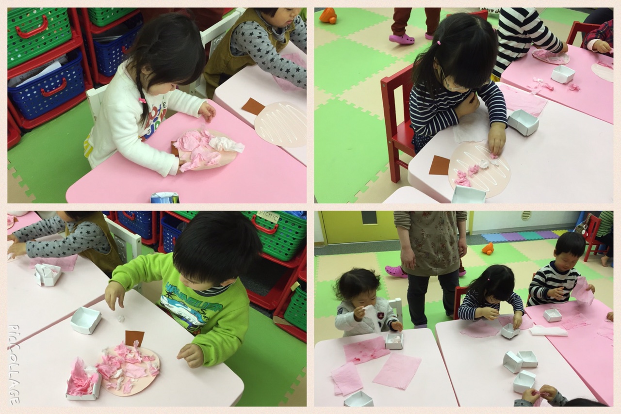 カデナでは春に向けて桜の工作をしました。