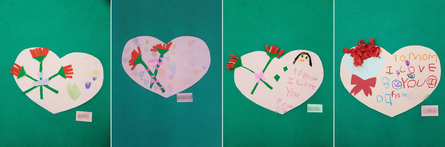 完成した作品の一例が こちら。早速、迎えに来た お母様達に手渡していました。普段のお子さんからは想像できない完成度の高さ、という声を多数いただきました。お子さんの成長を実感、そして 今回の贈り物。お母様達は皆さん、目尻が下がりっぱなしでした。