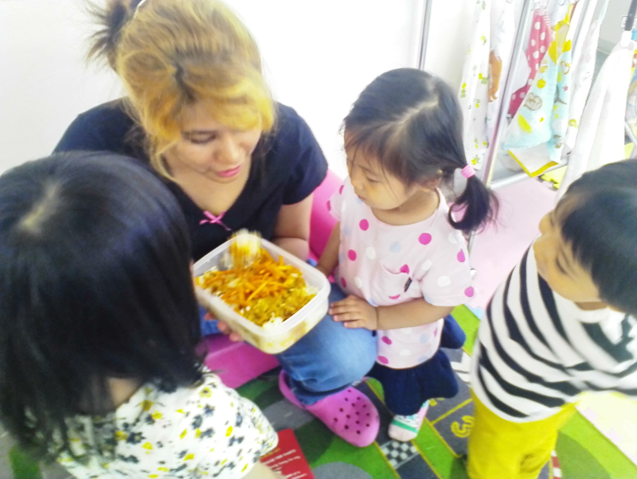 そう、朝も昼も夜も。そして、ここは日本だからスプーン使って食べているけど、パキスタンでは手を使って食べるのよ。