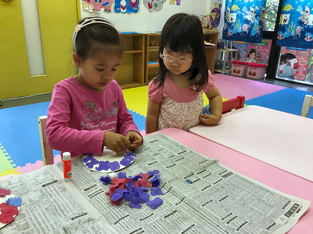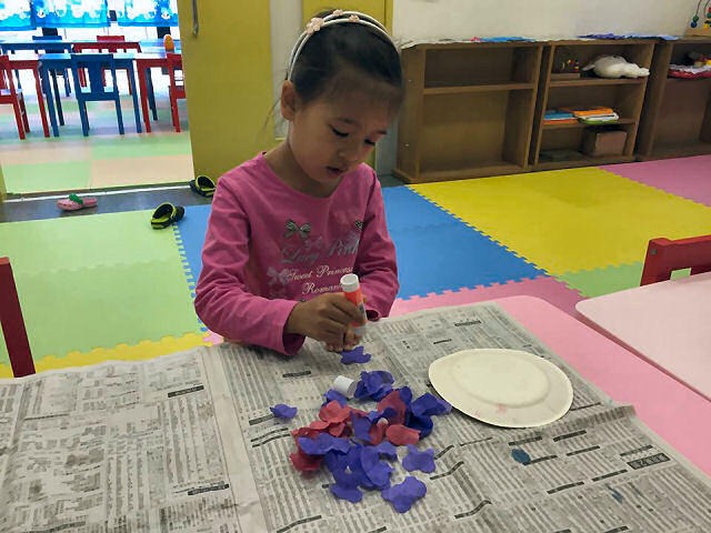 ということで恒例の工作は紫陽花作り。英語で紫陽花は「hydrangea(ハイドゥランジア)」。日本では花言葉が色々ありますが、西洋では「非情」。・・・あまり お近づきになりたくない花言葉ですね。