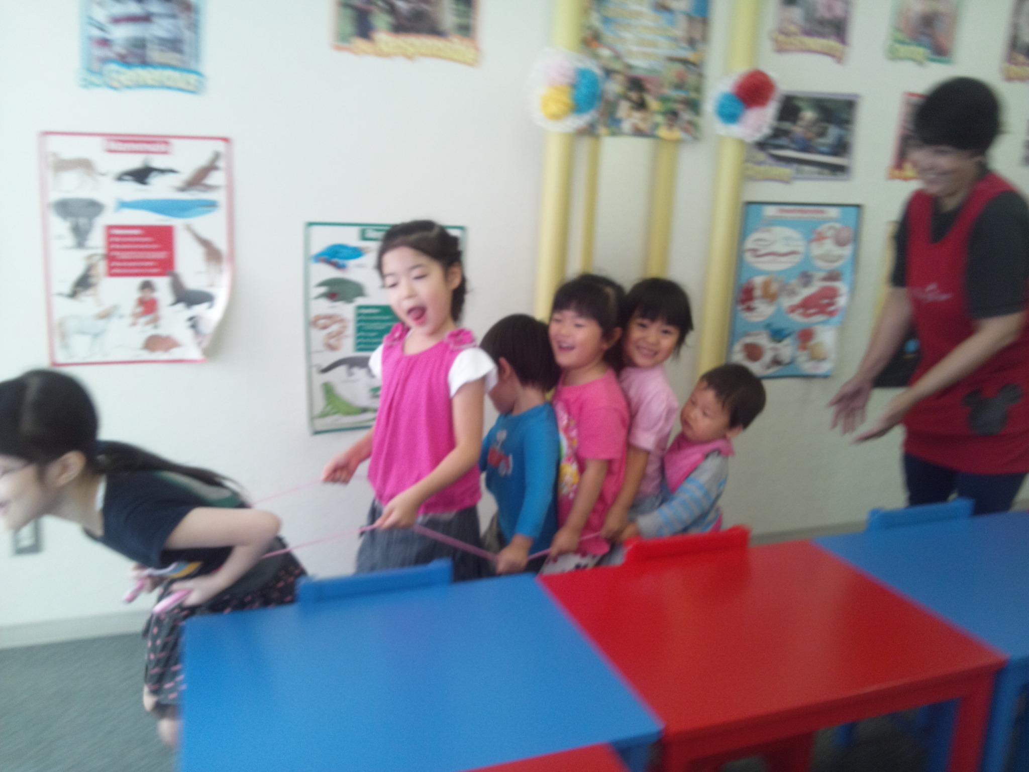 今日は、一人の子が縄跳びを持っていたら、どことなく、Chu chu train がスタート。