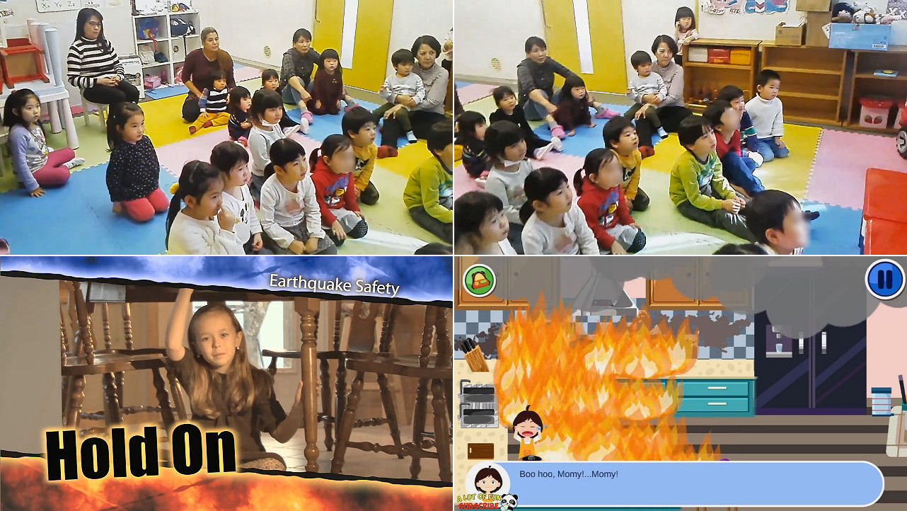 当スクールで使うDVDということで、内容は当然 全て英語。今回は避難訓練の知識編という名目での実施でした。次回は実践編ということで、慌てず騒がず指定の避難場所まで行く予定です。