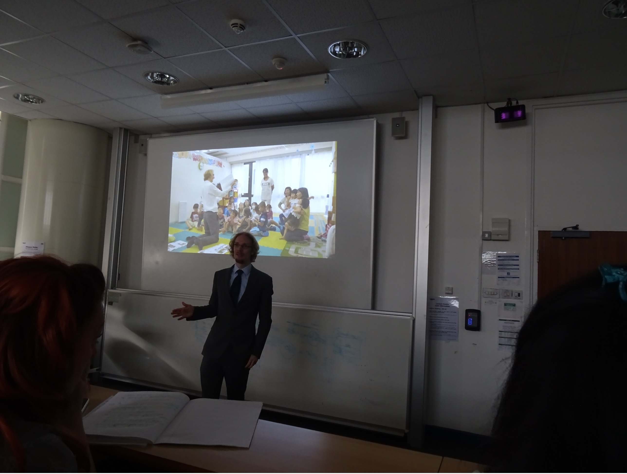 なお,週一ですが,ドイツ語もあるそうです。また,放課後はお絵描きや科学実験(粘土で色の勉強など)などの活動があります。その為,幼稚園と言っても保育園くらいの時間滞在しています。2日目に迎えに行くと,クラスメートに囲まれて机で寝てました。大物…。