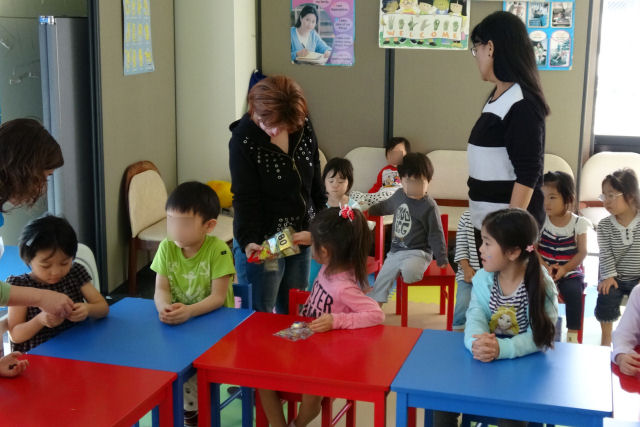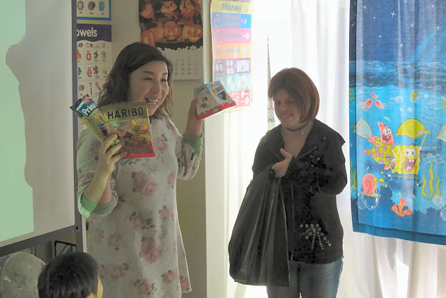この日は彼女からキッズにドイツの お菓子をプレゼント。物珍しさも手伝ってキッズは大喜びでした。ドイツ人と日本人が『英語』という国際公用語を用いることによって自由に意思疎通。そんな国際交流ができました。