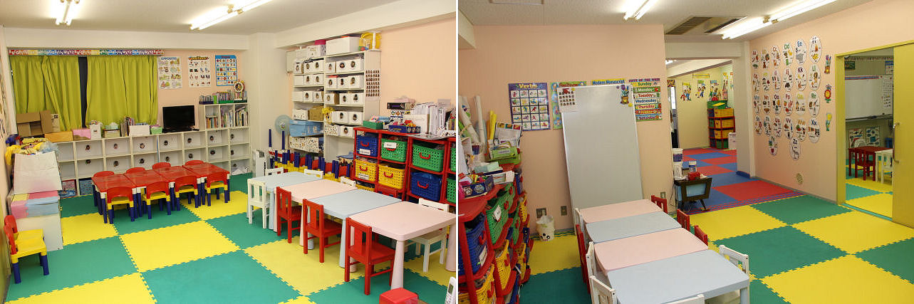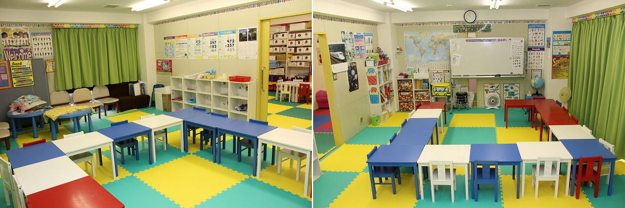 こちらは年下組およびベビーちゃん達が お勉強をする部屋。パッと見は改装工事前と ほとんど変わりませんが、壁やカーテンが防火仕様になっています。