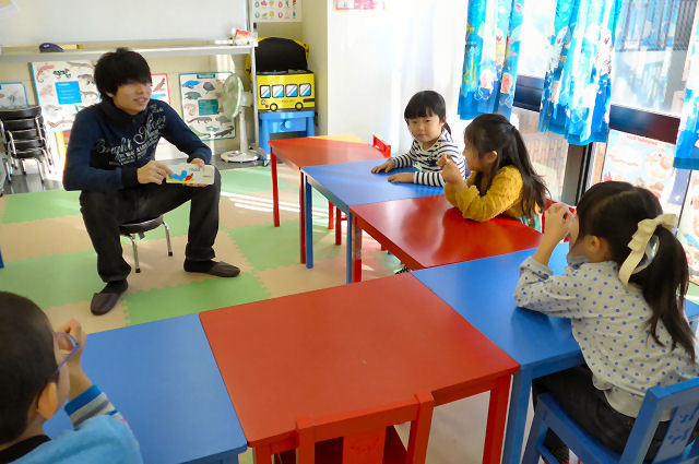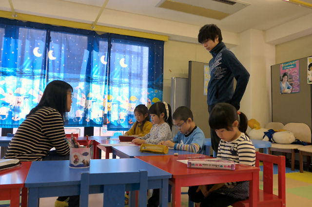 先月から当スクールで教鞭を執る・・・と言うよりはアシスタントとして活躍してくれている お兄ちゃん先生。当初は平日アフター(学童保育)の時間帯を受け持つことになっていましたが(但し曜日は限定)、今月からはサタデークラスも受け持ってもらうことになりました(月に2~3回)。今日はサタデークラスのデビュー戦。