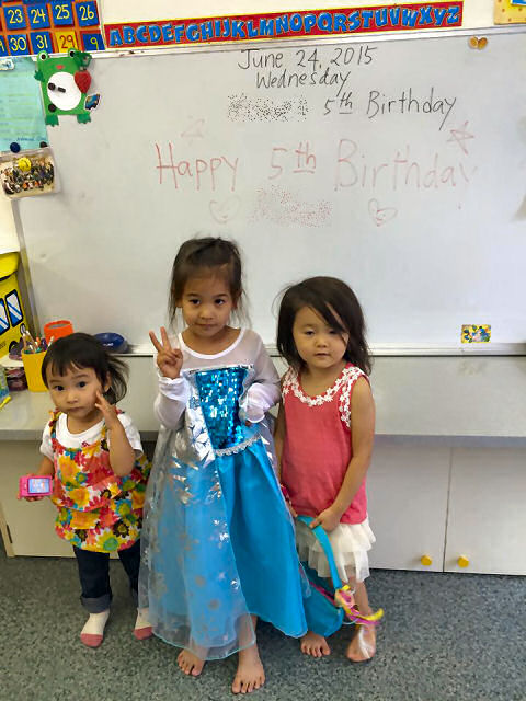 ところが・・・こちらの2人、同学年ではないんです。1人は3月31日生まれ、もう1人は4月2日生まれ。僅か2日間の違いで1年分の差が発生。とはいえ、小学校に上がれば そういったことを意識することが あるかもしれませんが、当スクールでは一切関係無し。みんなで楽しく英語を学べれば、学年なんて関係ありません。
