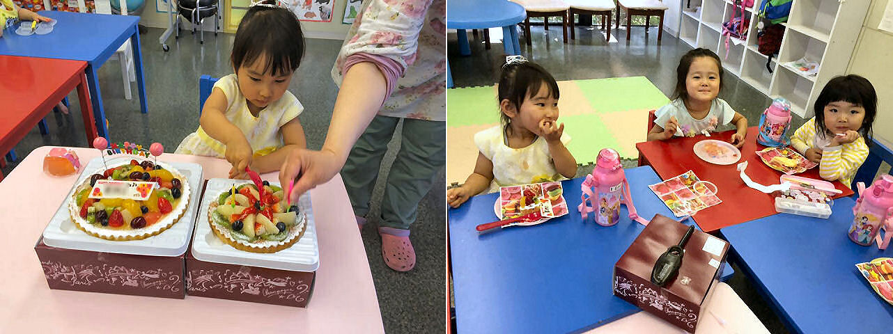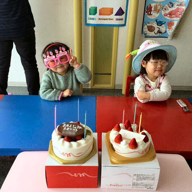 2人が当スクールに通い始めたのは同時期、誕生日も年月日が僅かに2日違いということで、合同での誕生日祝いです。