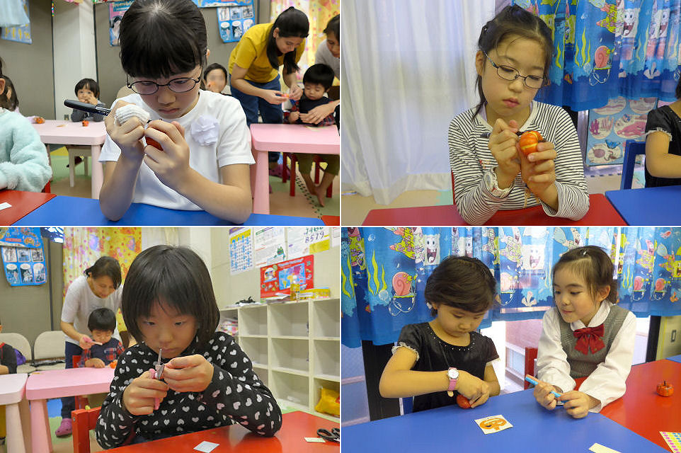 今月末はハロウィーン。当スクールのフルデイクラス(日中クラス)では毎年違った催し事を企画・実施しており、今年も 御多分に漏れず。アフタースクール(英語の学童保育)でも小規模ながらハロウィーンにちなんだことを毎年実施していますが、今年の企画は今日 先行実施することになりました。お題目は工作とデザート作り実習の2本立て。