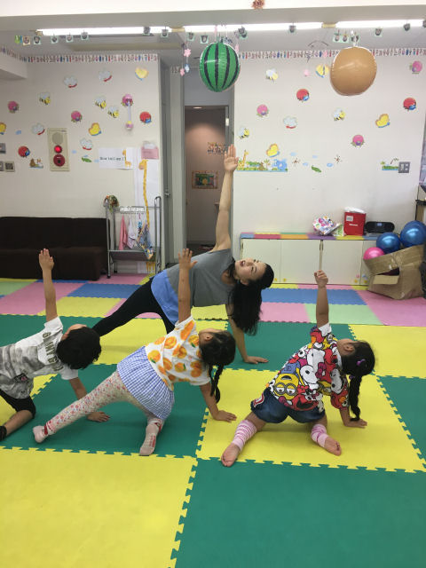 そんな状況下でしたが、このたびサタデークラスでもスタッフの特技を活かした授業開始となりました。それはヨガ。サタデークラス限定での実施です。新しく加入したスタッフはヨガが得意ということで、本日は記念すべき1回目となりました。