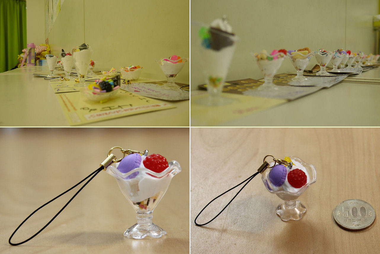 美味しそうなパフェが 出来上がったかな? ただ、ホイップクリームの部分が乾くのに24時間以上を要します。今すぐ使いたい気持ちはグッと抑えて、明日以降 部屋に飾るなり、玩具として使うなり、ストラップを繋げてカバンに ぶら下げてくださいね。