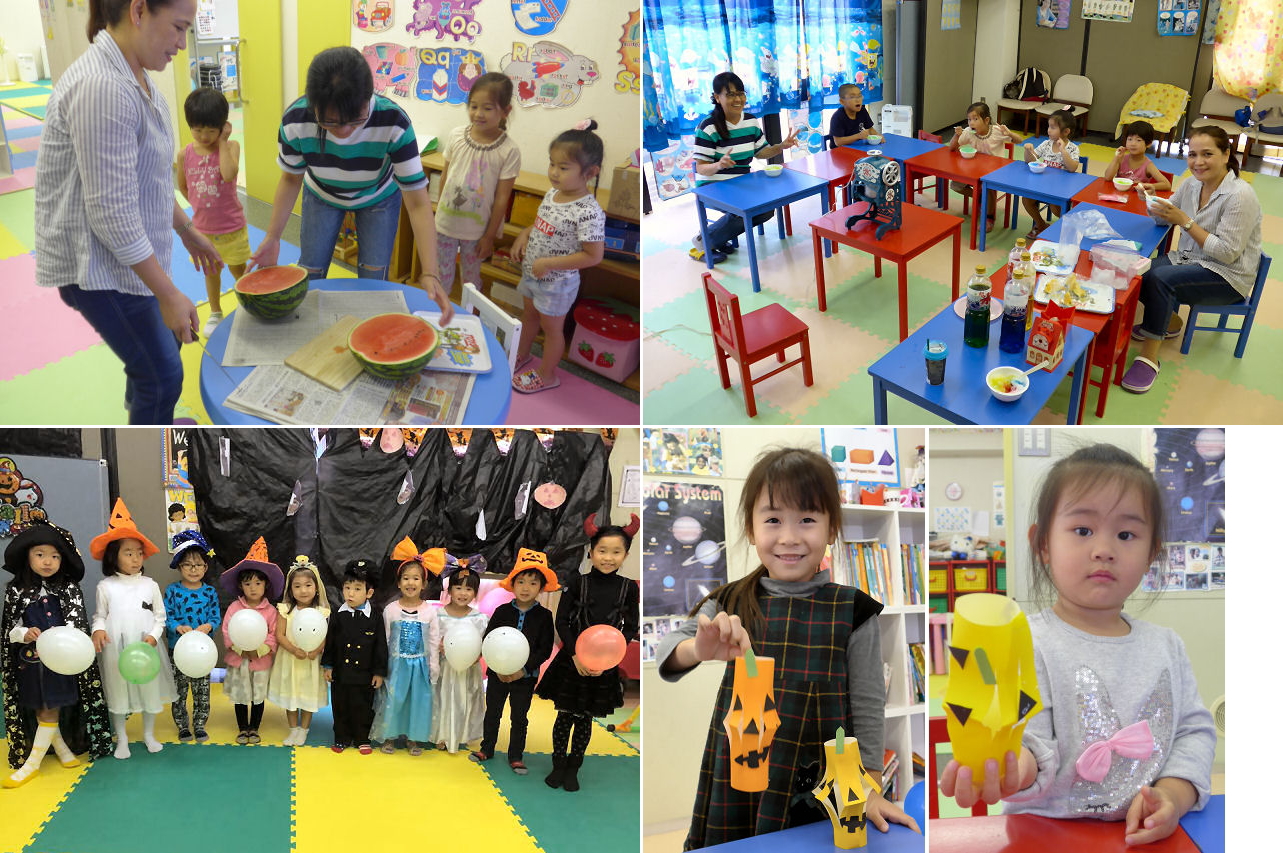 フルデイクラスでは各スタッフの特技を活かす形でフラ、音楽、空手(但し「格闘技」と言うよりは作法を通じて礼儀を学ぶのが主)、運動(横文字で言うところのエクササイズ)、お絵描き教室といった、習い事に準ずるような内容も授業の一環として取り入れています。勿論、アメリカンプリスクールでの授業ということで、内容は全て英語で実施されます。