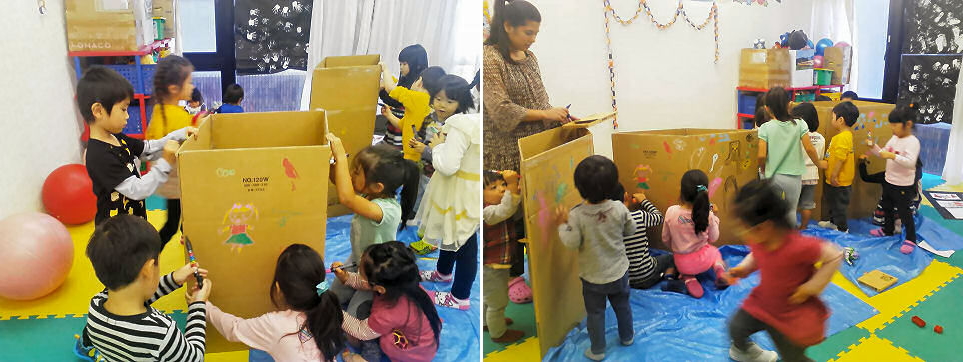 当スクールで遠足、夏祭り、聖夜会、卒園式と並ぶ5大行事(?)の1つ、ハロウィーン。本番は明日ですが、そのための準備作業は何日も前から着手しており。スクールの中は日に日にハロウィーンの気配が色濃く出てくるようになりました。