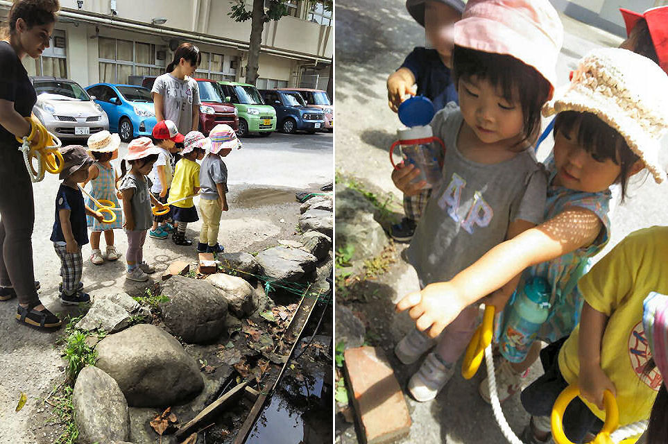 無事に到着し、小学校の敷地内に お邪魔させてもらい、池を泳ぐ お魚を鑑賞。