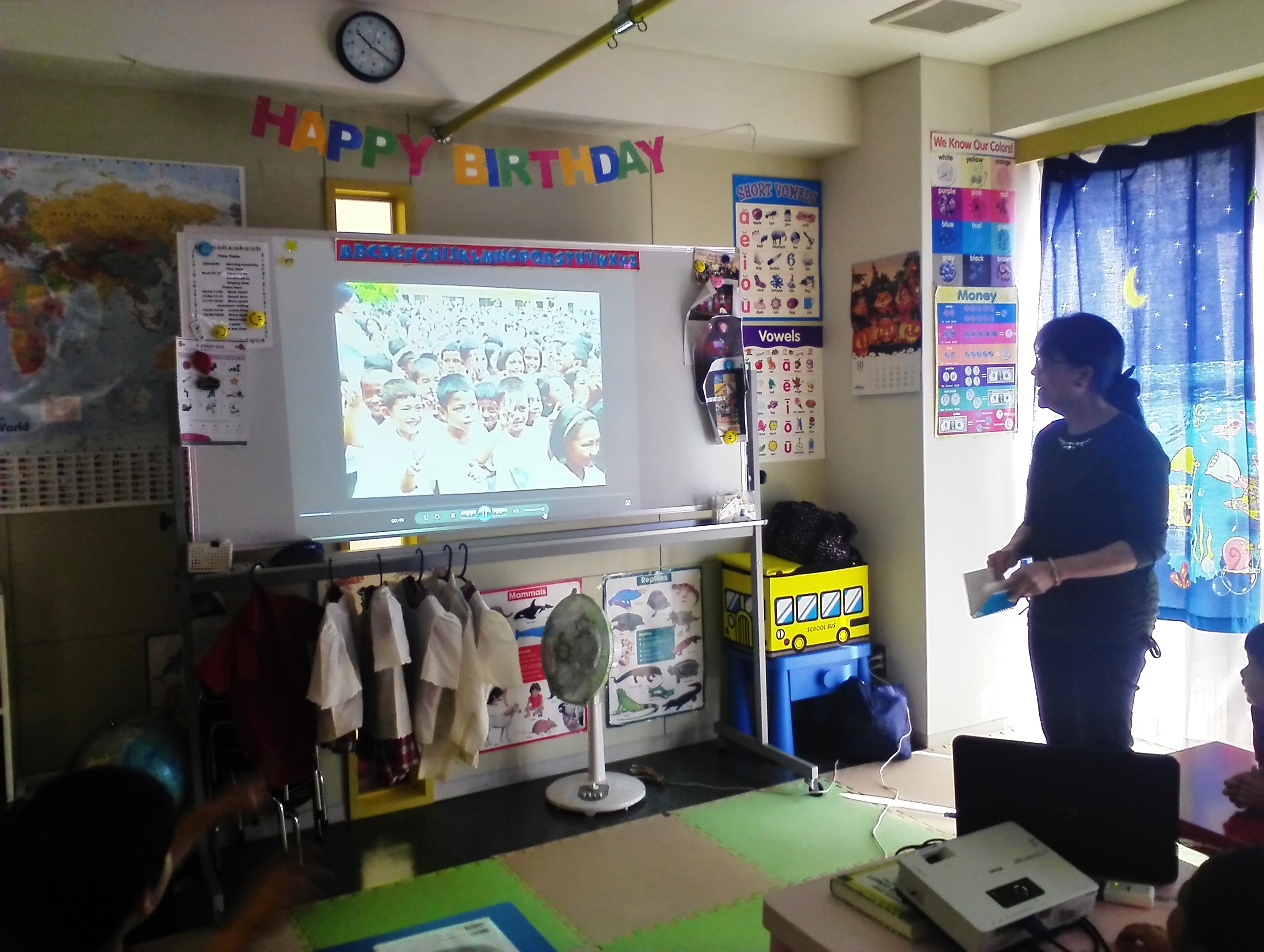 まずは、プロジェクターを使い、フィリピンの海の景色、生活風景、国歌やダンスの映像を観ながら学習。