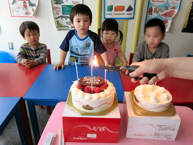 2人が当スクールに通い始めたのは同時期、誕生日も年月日が僅かに2日違いということで、合同での誕生日祝いです。