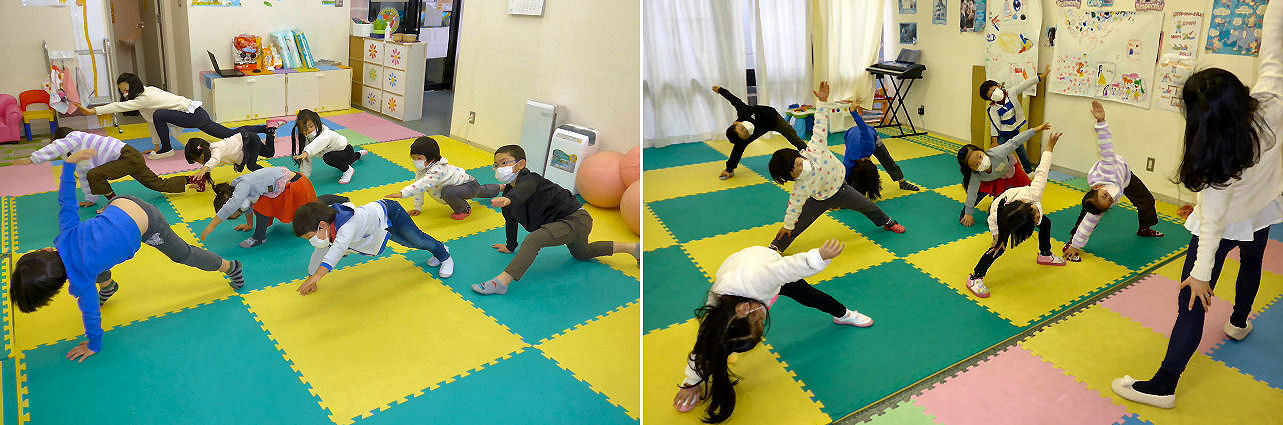 最近は物騒な病気が色々と流行っているようです。体の内側から抵抗力をつけるべく、サタデークラスでは月に数回ヨガを実施。ただ、今日の場合、真面目にやらない子は昼食抜きという脅しをかけているため(!?)、みんな いつも以上に真剣でした。パッと見、激しい運動には見えませんが、体がポカポカ暖まってくるのが よく分かります。イイ感じに お腹が空いてきたので、昼食に突入します。